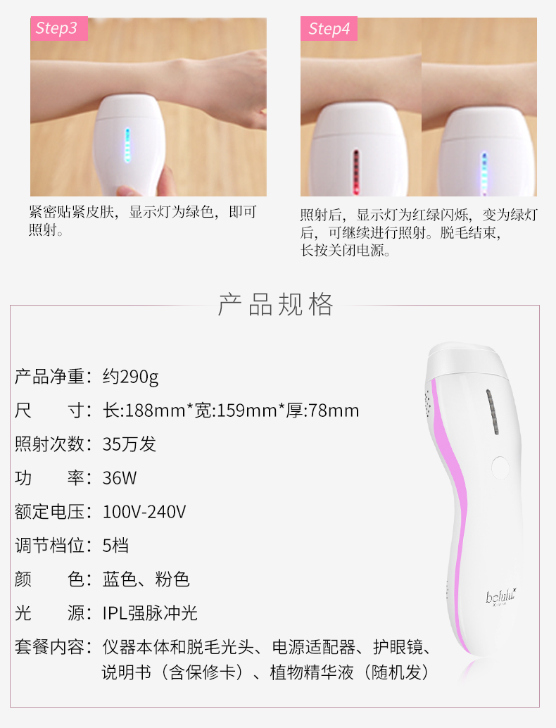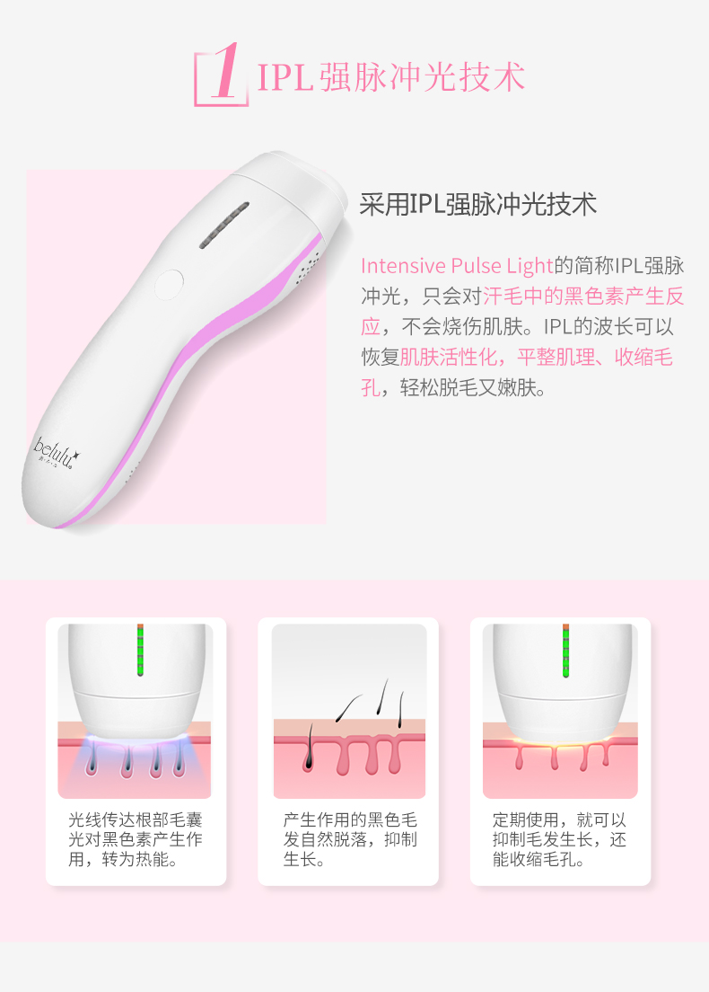 商品名称:belulu日本激光脱毛器 无痛腋毛私处全身 女士家用IPL光子脱毛机