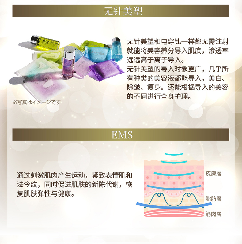 | 功能: | 无针美塑、电穿孔、EMS、RF、震动按摩、光子嫩肤 |